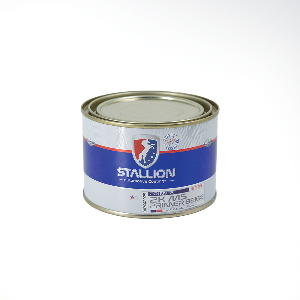 Stallion 2K MS Primer is a high-quality, two-component (2K) primer designed for use in automotive refinishing. The "MS" in its name stands for "Medium Solid," which indicates the primer has a higher solid content compared to regular primers. This allows for better filling properties and surface adhesion, making it ideal for use on metal, plastic, and other automotive substrates.